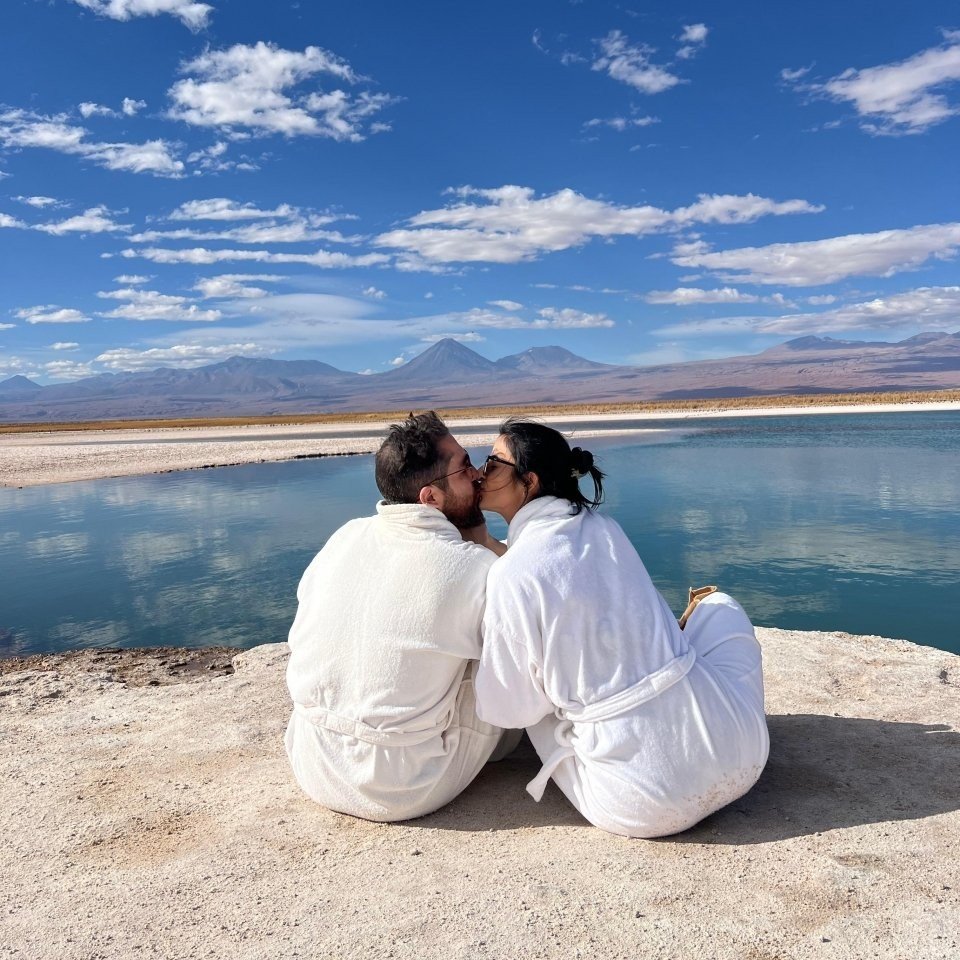 Cumbuco foi o começo das aventuras e ficou guardado para sempre na memória. Depois, a estrada se abriu em muitos caminhos: mais praias pelo Brasil — onde, entre sol, areia e mar, eles parecem conseguir parar o tempo e recarregar as energias; Portugal e Ubatuba como casas emprestadas; o Atacama, com a beleza única do deserto; o Caribe em tons de azul, com Curaçao em cores e mar; o Rio de Janeiro, que virou quase rotina; e, em especial, a Itália, com seu charme próprio — com destaque para as Dolomitas, onde o amor virou promessa e ganhou anel.